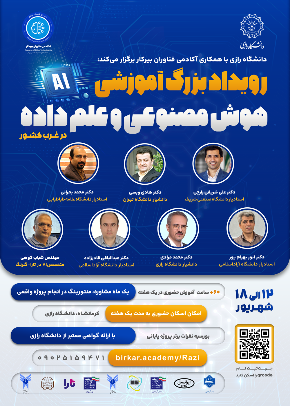 نخستین رویداد علمی–آموزشی «هوش مصنوعی و علم داده» در غرب کشور، صبح روز چهارشنبه ۱۲ شهریور ۱۴۰۴ با حضور جمعی از استادان برجسته دانشگاهی و مهمانانی از استانهای مختلف کشور، در سالن اجتماعات پروفسور شمسیپور کتابخانه مرکزی دانشگاه رازی آغاز به کار کرد. این رویداد هفتروزه با محوریت فناوریهای نوین، برای نخستین بار در منطقه غرب کشور برگزار میشود و میزبان علاقهمندان و پژوهشگران حوزه هوش مصنوعی است.